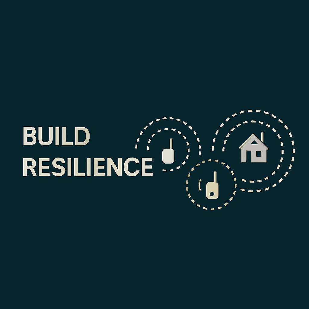 Shielded Signals ‘Build Resilience’ graphic – promoting secure communication networks for homes and devices.