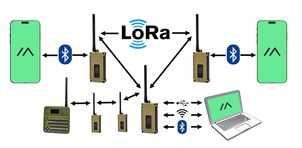 Before getting started with Meshtastic, you need to understand what it is and why Shielded Signals uses it for encrypted data communications. In a nutshell, think of the messaging program Signal (our hands down favorite) but without the need for the internet or cell phone network. That’s the beauty of meshtastic: an open source, self-healing, low-power, encrypted, wireless data network, where every node helps build the resiliency of the overall network. from the official meshtastic.org website, here is a high-level diagram of how the meshtastic network operates: